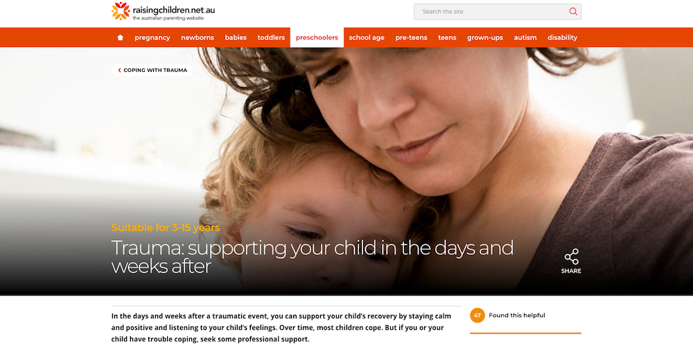 In the days and weeks after a traumatic event, you can support your child’s recovery by staying calm and positive and listening to your child’s feelings. Over time, most children cope. But if you or your child have trouble coping, seek some professional support.